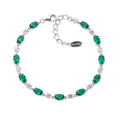 Bracciale in argento 925 rodiato con zirconi rossi o verdi alternati a zirconi bianchi. Lunghezza regolabile da 16 a 19 cm con catena di allungo e chiusura a moschettone. In questo elegante bracciale gli zirconi rosso rubino o verde smeraldo taglio ovale da 6 mm si alternano a zirconi bianchi tondi da 3 mm, per omaggiare i tuoi colori e la tua luce più bella.