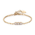 Bracciale a sfere piccole in acciaio 316L, finitura pvd oro 14K e centrale con cubic zirconia colore violet.