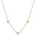 Collana girocollo in acciaio 316L e finitura pvd oro 14K con stelle e cristalli.