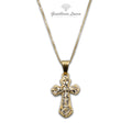 Collana doppia lunghezza con ciondolo a forma di croce in oro giallo 18 kt con dettagli in oro bianco.