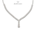Collana in oro bianco 18 kt con sfere impreziosite da Zircone taglio brillante. Il peso dell’oro è di g 12,00.