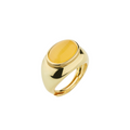 Anello aperto sotto il gambo, in ottone con finitura oro, con pietra centrale occhio di gatto giallo.