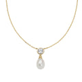 Collana in argento 925 dorato, pendente con zircone punto luce taglio rotondo e perla a goccia di 7 mm. In totale, il charm è 1,7 cm, mentre la lunghezza della catena è regolabile da 40 a 45 cm con chiusura a moschettone e catenina di allungo.