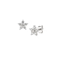 Orecchini a lobo in argento 925 rodiato con zirconi. Due piccoli fiori con centrale e petali di zirconi bianchi, delicati e dolcissimi, da scegliere nel colore preferito per indossarli tutti i giorni. Diametro 7 mm, chiusura con farfallina.