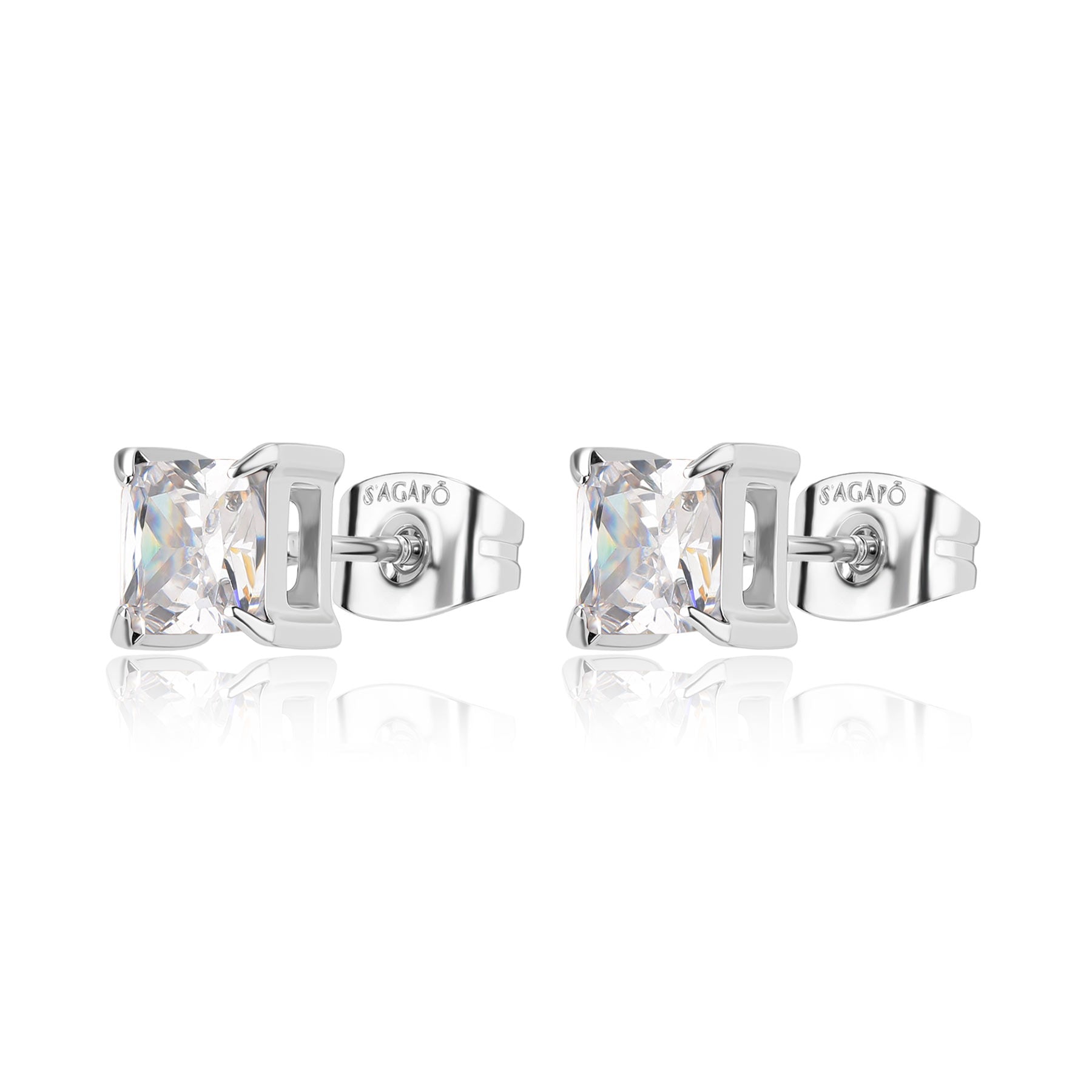 Orecchini a lobo in acciaio 316L con cubic zirconia bianco o nero.