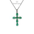 Collana in oro bianco 18 kt con croce di smeraldi e diamanti R ct: 1,20, D ct: 0,04 colore G, purezza VS.