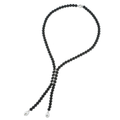 Collana in ottone finitura rodio e zirconi con perle di maiorca bianche e nere. (80 cm).
