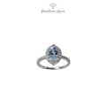 Anello in oro bianco 18 kt con acquamarina naturale taglio marquise (navette) ct: 1,69, contornata da diamanti taglio brillante ct: 0,50, colore F, purezza SI.