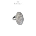 Anello spola in oro bianco 18 kt con pavé di diamanti naturali taglio brillante ct: 4,09, colore F, purezza VS1 + ct 0,89 colore F, purezza SI1. Caratura totale ct: 4,98.