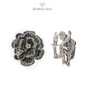 Orecchini A forma di fiore in oro bianco 18 kt con diamanti taglio brillante ct: 1,22 colore F, purezza VS, diamanti neri taglio brillante ct: 3,75. Il peso dell’oro è di g 8,90.