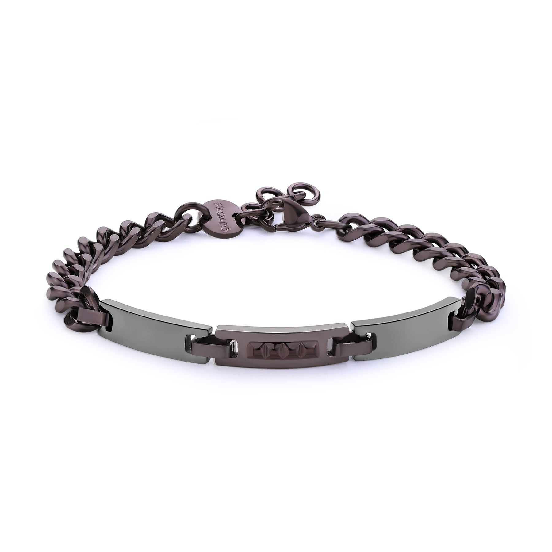Bracciale catena in acciaio 316L in finitura pvd marrone e centrale in finitura pvd colore rutenio.