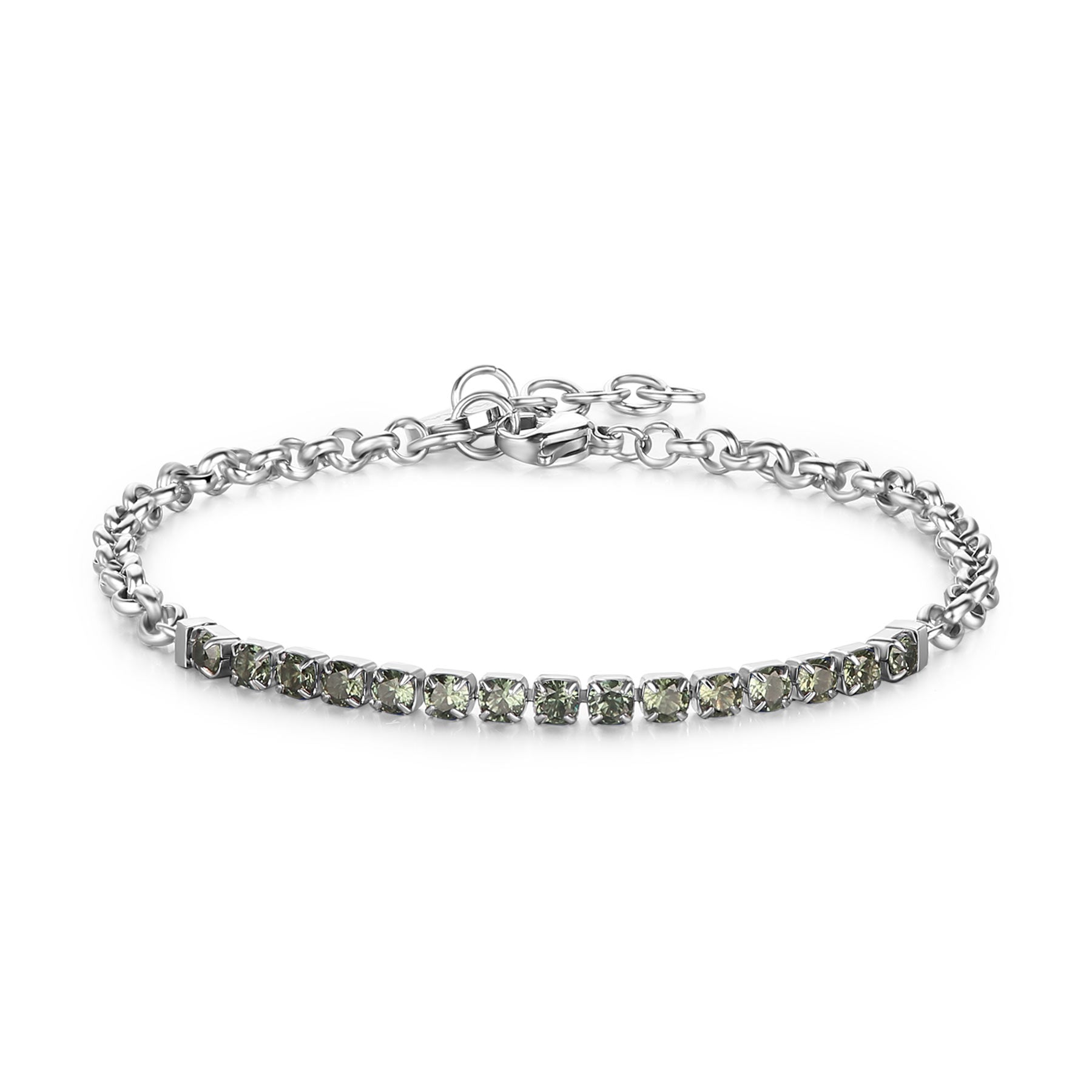 Bracciale catena in acciaio 316L e centrale con cristalli neri e finitura pvd colore rutenio.