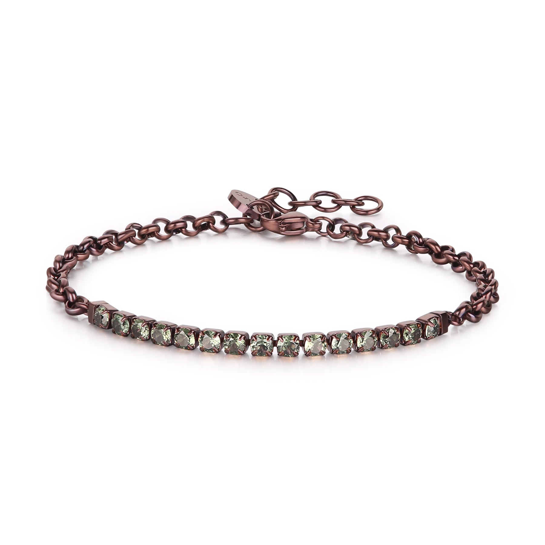 Bracciale in acciaio 316L e finitura pvd marrone con centrale tennis con cubic zirconia colore coffee.