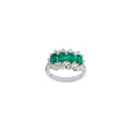 Anello in oro bianco 18 kt con smeraldi naturali taglio ovale ct: 1,84, contornato da diamanti taglio brillante ct: 0,90, colore F, purezza VS1.
