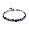 Bracciale in acciaio 316L con elementi in ematite e agata colorata.